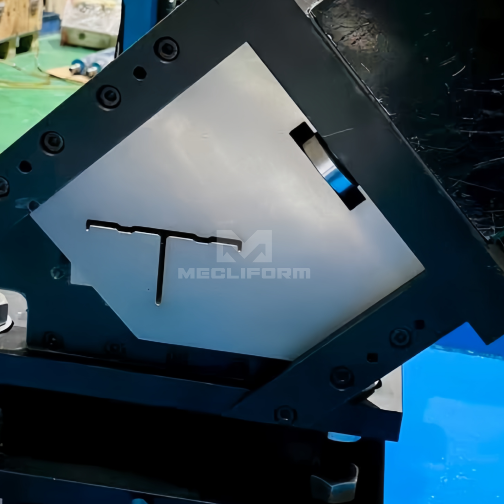 T profile roll forming machine (single strand or two strands), consists of decoiler, roll former and cutting unit (without waste). It achieves high efficiency.