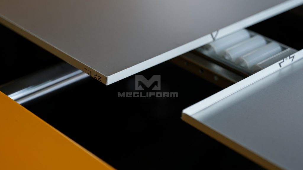 Cutting unit with servo bending is used to provide smooth and clean cuts, meanwhile bending the aluminum strip to avoid scratch. It is typically operated by a control panel that allows the user to adjust the cutting speed and bending angle.